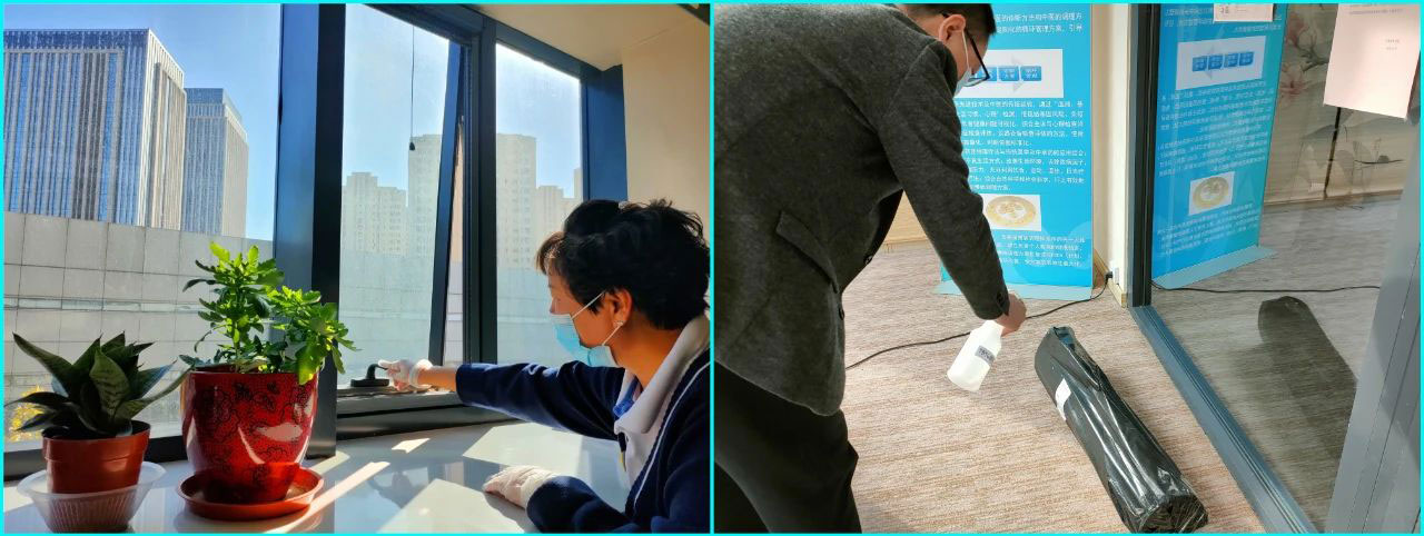 早晚开窗通风,保持入住长者房间空气流通,并劝导入住长者佩戴口罩、勤洗手,预防病毒传染。家属送来的生活用品必须经过喷洒消毒才能送入。