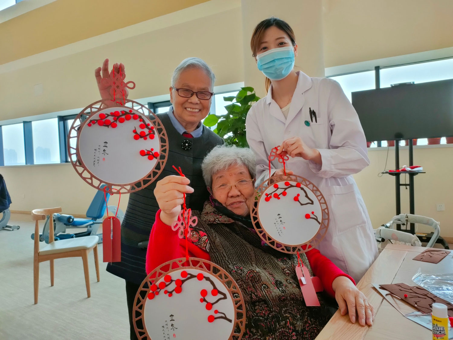 虽天津社区老年公寓外寒风呼啸,疫情肆虐,但是院内通过各种丰富的手工文娱活动,为院内长者释放了了内心的苦闷与压力。同时我们还设置了展板,展板上挂着书法、绘画等作品,作品丰富多彩,逼真传神,引得长者们驻足观看。
