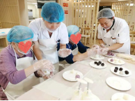 中秋之际,宜善园还邀请到了中国烹饪名师商洪芳面点师为老人制作美味的面点。商洪芳老师是“津沽龙须面“非物质文化遗产传承人,同时各种面点的制作也造诣颇深。现场为长者们制作了象征着“团圆”的特制麻团,并且教给了长者们很多制作面点的小窍门。看着长者们学的开心,吃的满意,商老师和宜善园的工作人员也体会到了为长者服务的幸福。