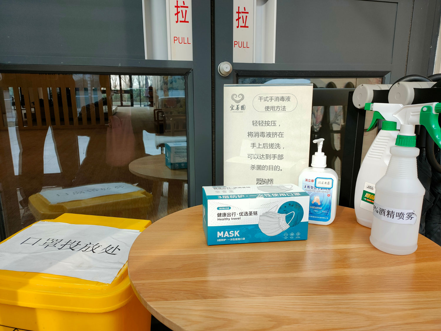高端养老机构除了测量体温之外,在护理经理的指导下,原先的清洁模式消毒全部“升级”。护理及保洁人员每日定时会对楼道、公用设施、集中休闲区域、电梯按钮与扶手、长者居住居室、厕所等用84消毒溶液进行细致消毒。